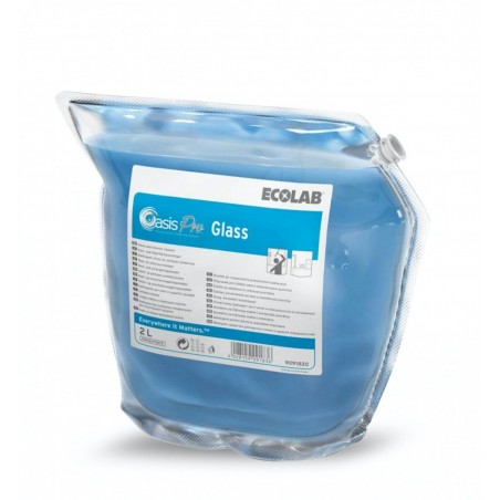 OasisPro Glass di Ecolab è un detergente liquido super-concentrato ideale per la pulizia di superfici lucide in vetro, quali finestre e specchi e sull'acciaio. La formulazione sviluppata garantisce una rapida asciugatura, senza aloni e con risultati eccellenti e superfici brillanti.
